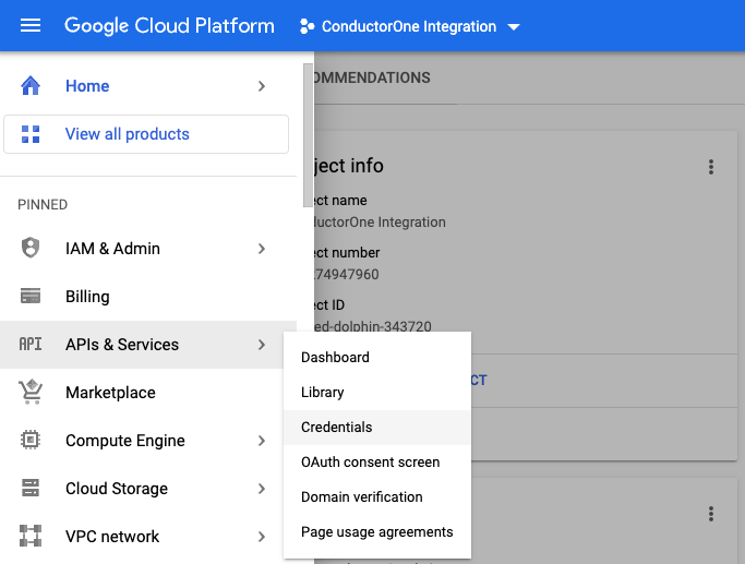 In the navigation menu, navigate to > APIs & Services > Credentials.